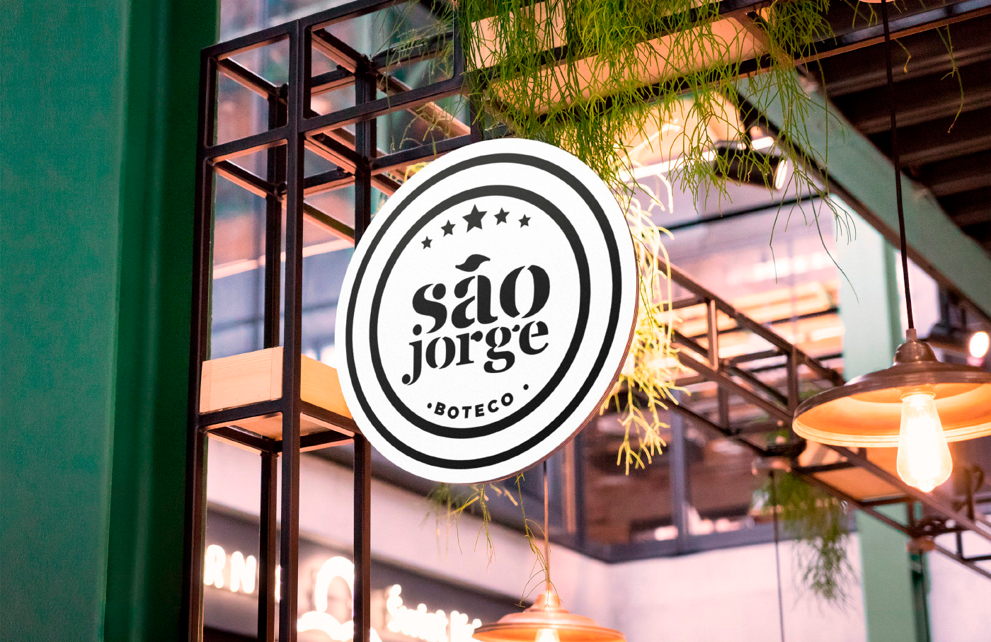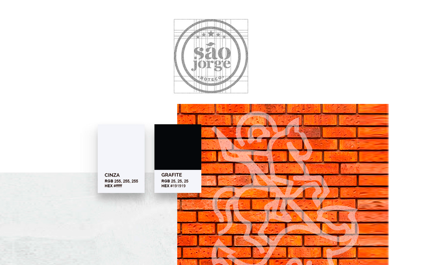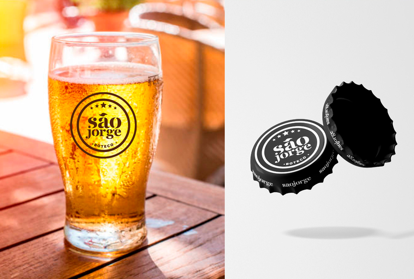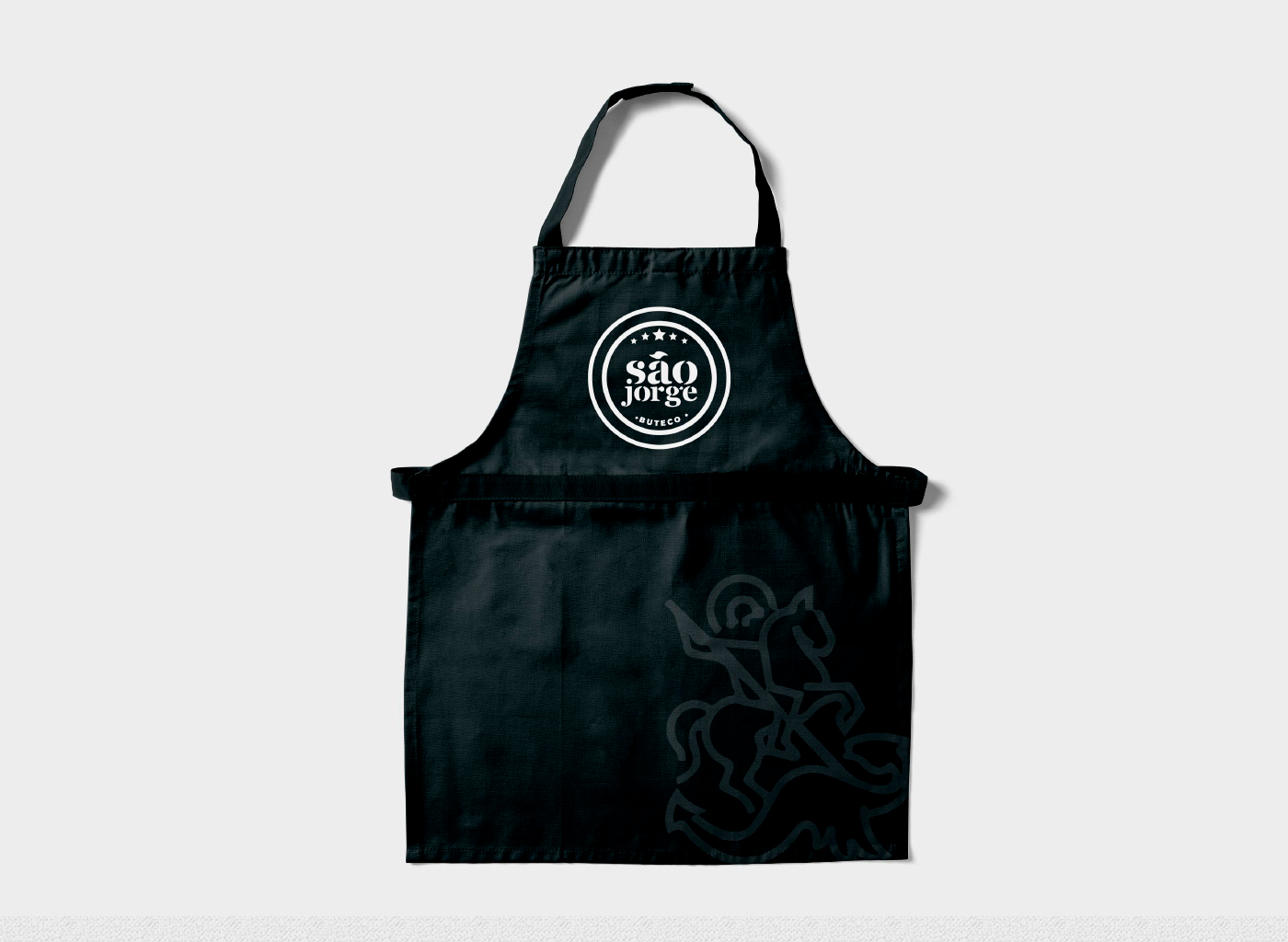 Além disso, o conceito de São Jorge, o santo guerreiro, foi integrado ao design através de elementos visuais que remetem à bravura e à proteção. Incorporamos ícones sutis que fazem alusão à sua lenda, como a espada e o dragão, criando uma conexão emocional com os frequentadores do bar.